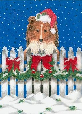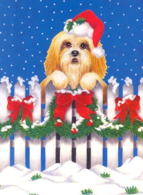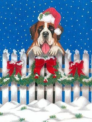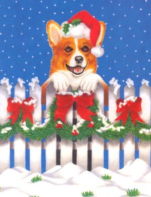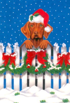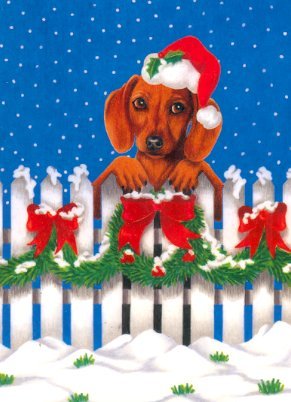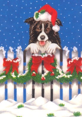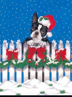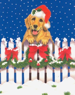 COMICAL HOLIDAY DOG FENCE CHRISTMAS CARDS